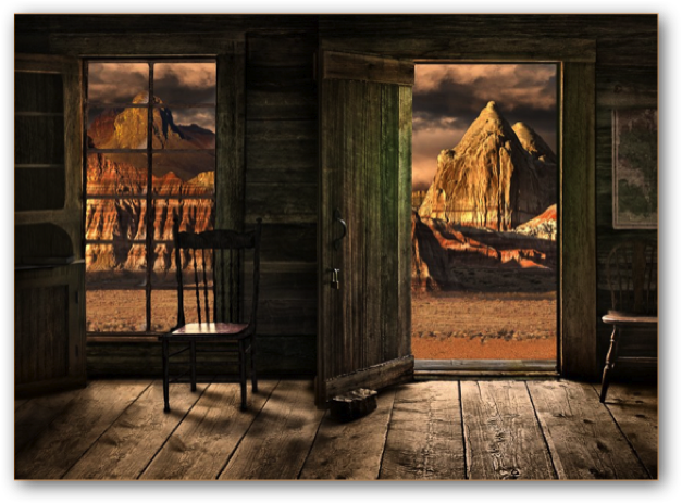 The cabin is in the ghost town of Ashcroft, Colorado, outside of Aspen. I had a very rough photo of it and had to do extensive work to make something of it. I even went back there to redo the photograph, but they had turned the cabin into a store room. The exterior (this being a composite) was originally a scene from one of my backpacking trips, and it (the background outside the cabin photo) was actually at 12.000 feet. However, I later changed my mind and used a scene from the area of Lake Powell Utah, just west of Page Arizona. I left the name as "Cabin at 12,000 feet" and while few have questioned it, the PPA judges said "we would have given you loan status on this (a very high honor), but we just didn't buy that the cabin was really at 12,000 feet". They were right. This one works great on either infused aluminum or as a canvas wrap.