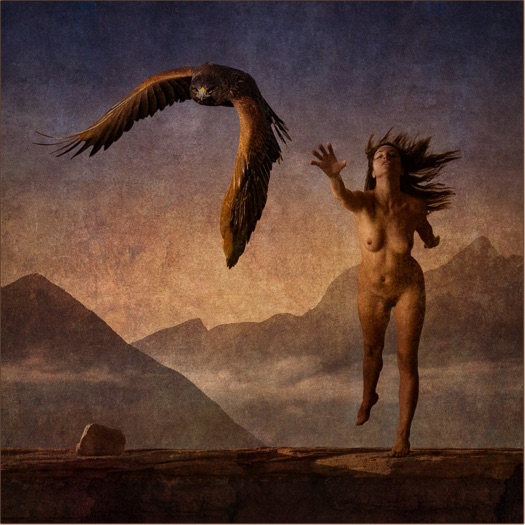 This is the first image in a five image story, centering around the Hawk "Alessio" and his valiant mission of self-discovery. Although intended for canvas, some like this even more on infused aluminum.